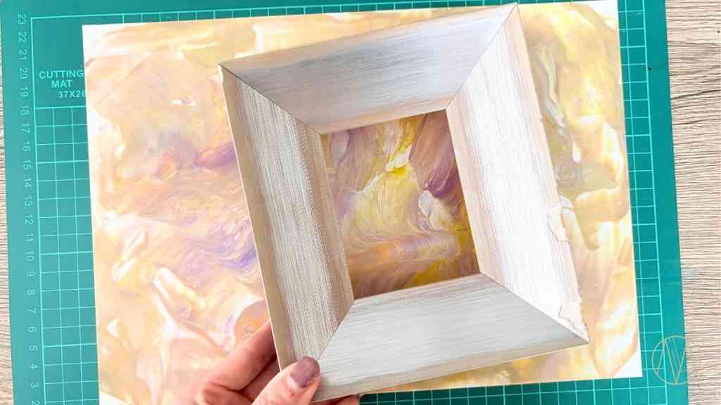 このとき簡単でいいので、額装する部分をイメージできる枠があると便利✨写真のように額縁をそのまま当ててもいいし、型紙などで枠を作ってもOKです!
